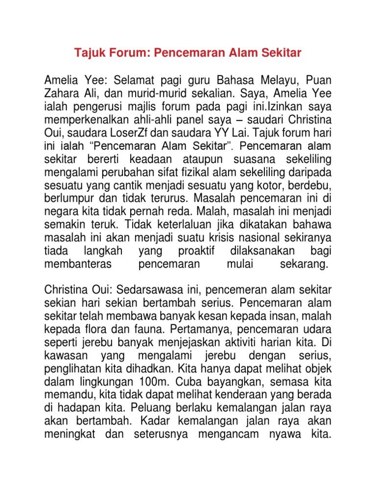 Teks Forum Pencemaran Alam Sekitar Docx Teks Forum Pencemaran Alam Sekitar Pengerusi Faris Irfan Bin Shamsul Aznan Ahli Panel Pertama Norizman Bin Course Hero